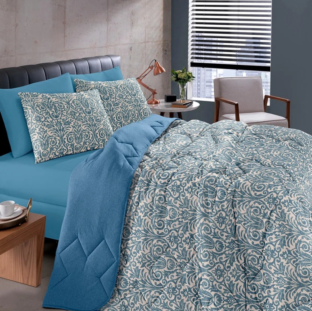 Edredom casal malha 100% algodão 1,80mx2,20m Basic estampado azul - Buettner