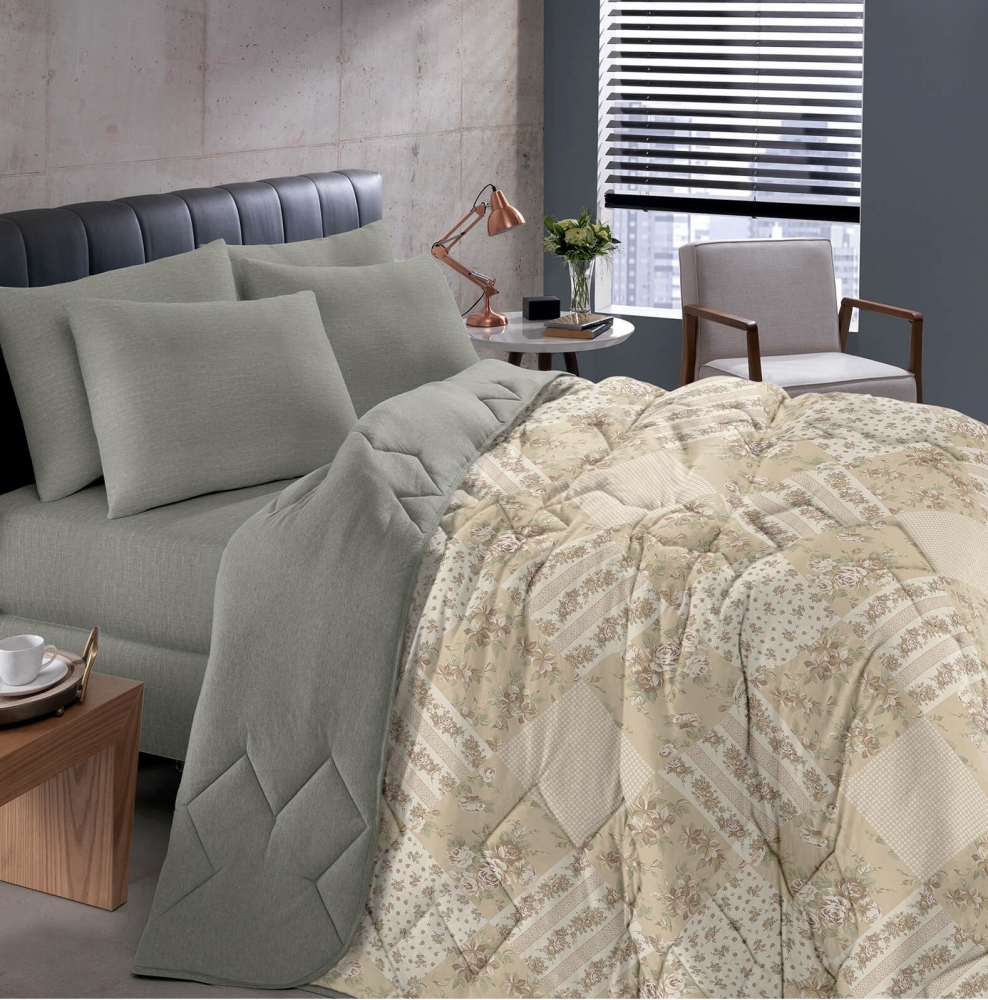 Edredom casal malha 100% algodão 1,80mx2,20m estampado bege - Buettner