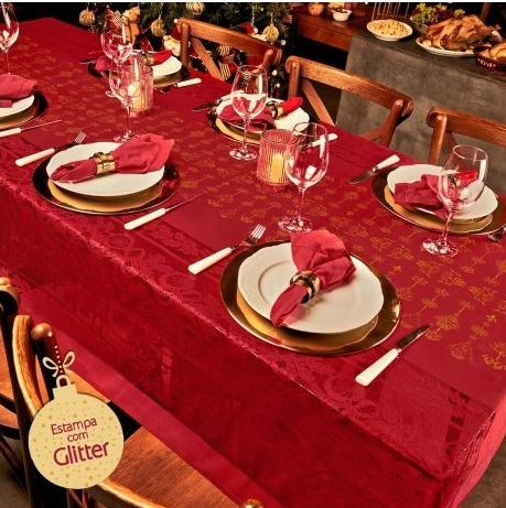 Toalha de mesa retangular de renda vermelha com glitter 1,55mx2,20m(6 pessoas) - Lepper
