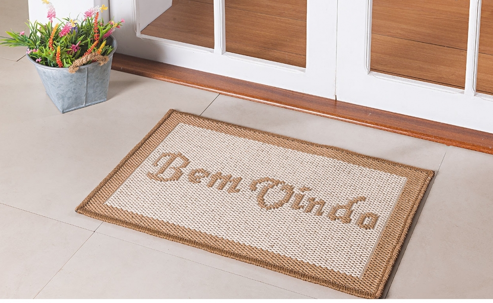 Tapete capacho antiderrapante Bem Vindo caramelo 40cmx60cm - Oásis