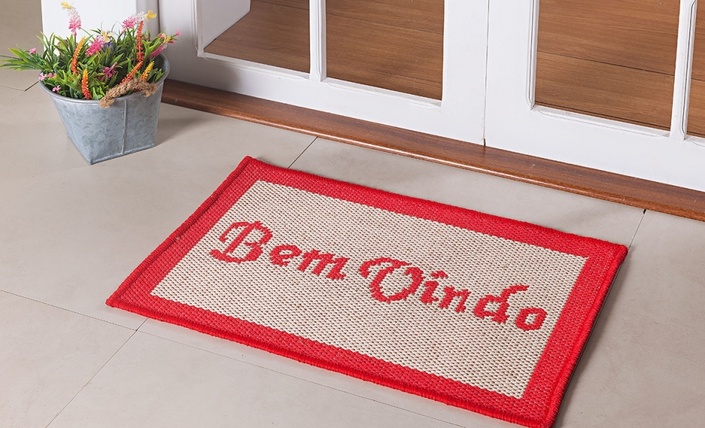 Tapete capacho bem vindo vermelho antiderrapante 40cmx60cm - Oásis