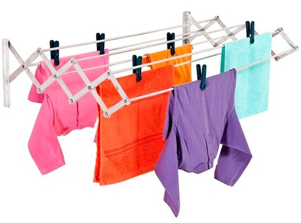 Varal de parede sanfonado em aço branco 1m. - Mor